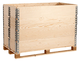 We also manufacture Collared Pallets. These pallets are designed to meet the most challenging applications in carrying goods and cargo over large distances in a safe manner. The wooden collar system consists of pallet, pallet collar, and lid. They have hinges on the corners, so they can fold flat when not in use, our pallet collars are also heat treated to meet sanitary regulations, making them an ideal choice for usage.